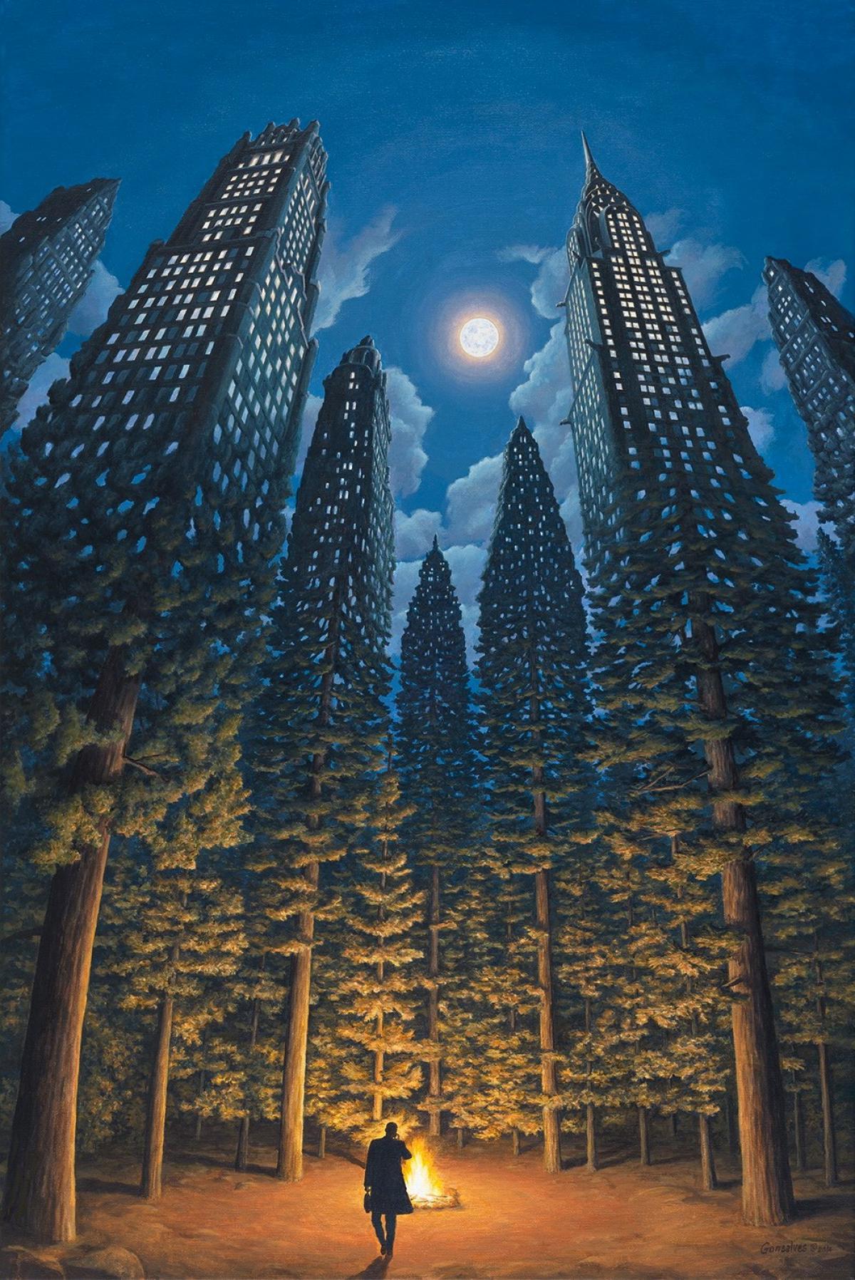 Rob Gonsalves is a Canadian painter, born in 1959 in Toronto, Canada. The style of his painting is called magic realism also known as fabulism. This is a style that encompasses a range of different concepts that share a common realism with magic or unreal elements as if they are a part of the real world. He developed this passion during his childhood while using his imagination. By the age of twelve, he started learning more about architecture and began drawing imaginary buildings.